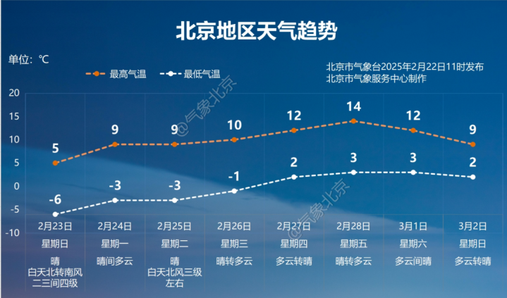 下周开始,北京明显回暖,尤其2月28日最高气温将升至14℃左右,派发一波“初春体验卡”。